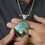 Chaque pendentif est signé et poinçonné par son créateur. Ce bijou d’exception met en valeur les reflets bleutés et verts typiques de la labradorite, pierre semi-précieuse très appréciée en lithothérapie.